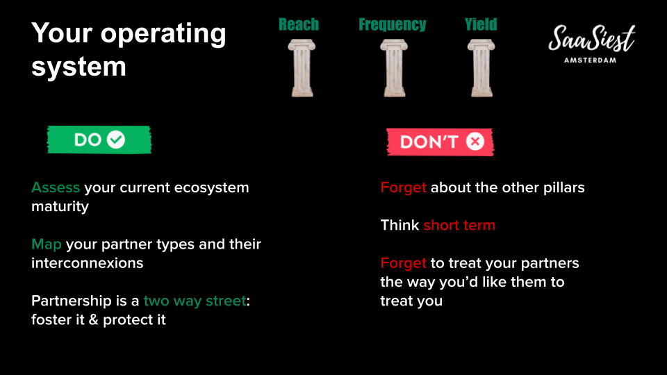 At SaaSiest Amsterdam, Benjamin broke down how to build an ecosystem that doesn’t just scale reach – but compounds value through three levers: reach, frequency, and yield.